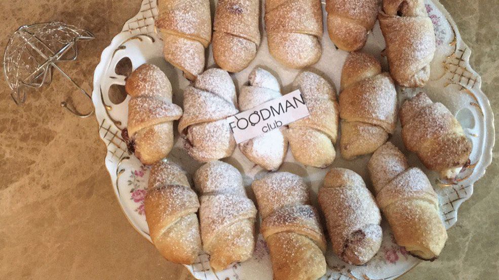 - Поставете извара и конфитюр върху всеки триъгълник, усучете.