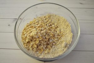 - Смелете овесена каша (150 г) в брашно, а останалото (50 г) оставете цяла.