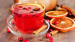 - Смесете в двулитров тенджера прясно изцедена червена боровинка и портокалови сокове.