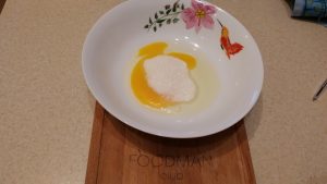 - Смесете яйцето със захарта.