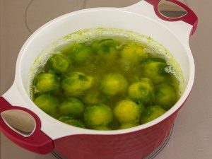 - Спуснете кипящата подсолена вода брюкселско зеле, гответе за десет минути.
