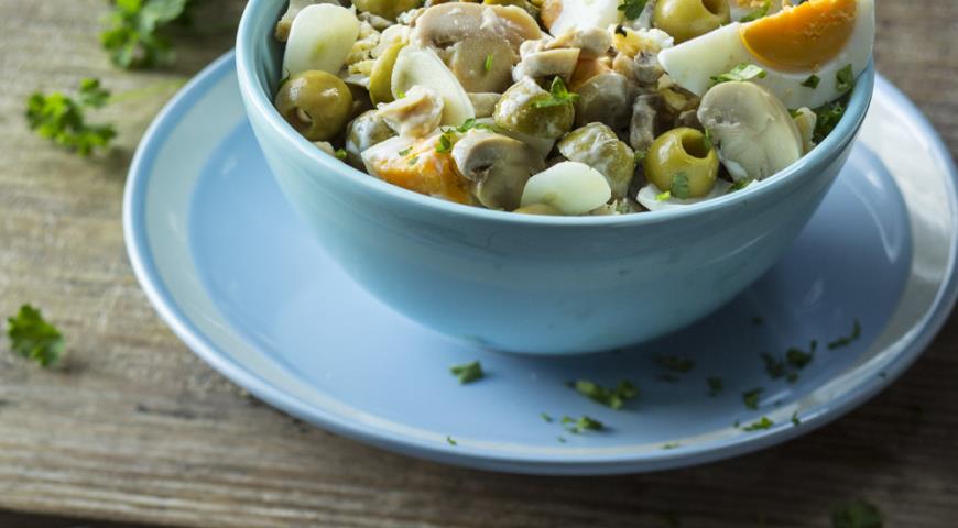 - Смесваме всички съставки за салатата, подправяме с майонеза и добавете сол и черен пипер на вкус.