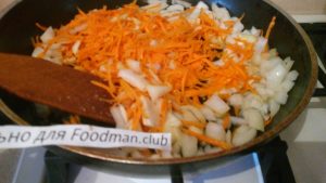 - Пригответе пържене на зеленчуци. Пържете до златисто кафяво добавете сол.