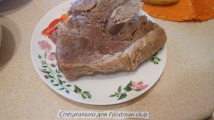 - Изплакваме месото и го пълним с вода, слагаме тигана на огъня. Щом заври, отстранете пяната, сол, черен пипер и добавете дафинов лист. Ще готвим 1 час.