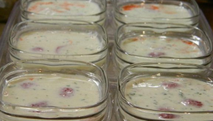 - Затворете готовия десерт с капаци и го поставете в хладилника. Колкото по-дълго десертът стои в хладилника, толкова по-гъст става.
