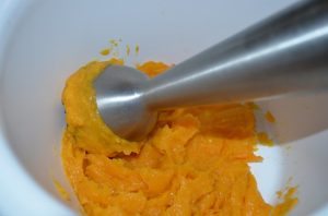 - Смелете тиквата до състояние на пюре.