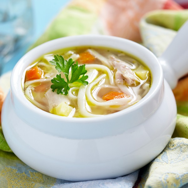 Вкусна пилешка супа. Домашните юфки го придават обрат. Направете го просто. Отнема много малко време за готвене. По желание добавете естествен цвят към тестото с юфка. от сок от моркови или спанак. Количеството брашно тогава ви трябва увеличете малко.