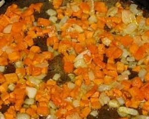 - Нарежете морковите със среден зарове, настържете корена на пащърнак ренде.