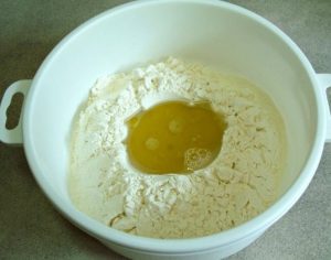 - Разбийте яйцето с вилица с щипка сол. Изсипете яйцето в брашно и омесете хладно тесто. Брашното може да е малко повече или малко по-малко колко ще вземеш.