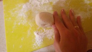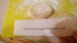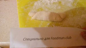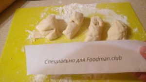 - Разточете колбаса от тестото и го нарежете на 4 такива парче.