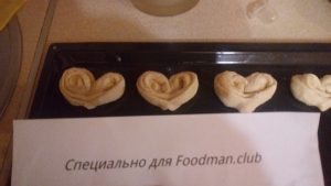 - Нарежете с нож наполовина (без да режете тестото, където е пръстът ни) и наредете тестото отстрани. Оказва се, такава кифличка!