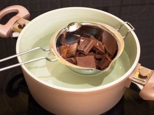 - Правим шоколадовата основа от сладкиши. Разтопете шоколада във вода баня.