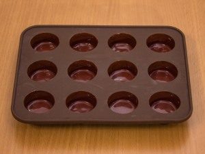 - Напълнете клетките с шоколадова маса, изгладете и поставете във фризера за поне пет часа, можете през нощта.