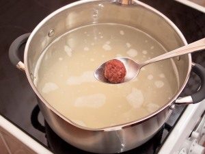 - Приготвени кюфтета във вряща вода с ориз гответе заедно в продължение на пет минути.