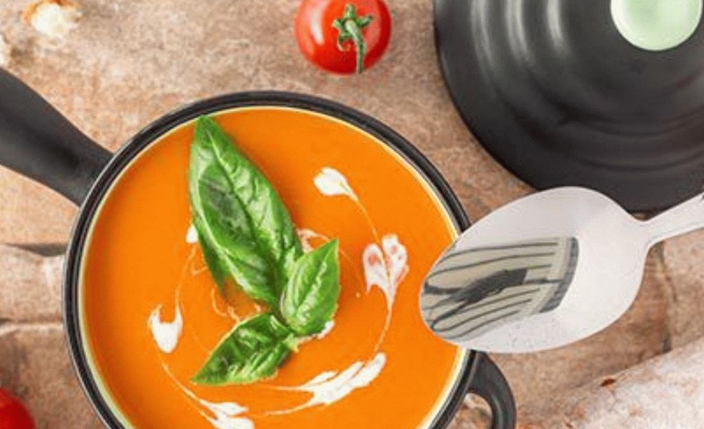А ко кажат, че доматената супа, това не означава, че това малко домати. За да се съставят хармонично и богато вкус, тази супа се приготвя у дома на месен бульон с добавка на целина, моркови, чесън. Е, и къде без босилека. Супа в края на краищата домат, а комбинацията от домат-босилек-чесън е само пробивна броня. Аако го направите в бавна готварска печка, тогава всички витамини се спестяват.