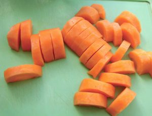 - Изсипете олио в купа, сложете лук, моркови, целина и чесън. Затворете бавната печка.