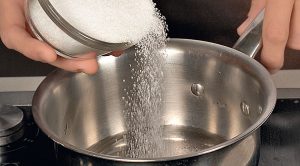 - Нека направим соса. Измийте и подсушете ментата, разглобява се на листа. В яхния задушихме с останалата захар вода (0,5 чаши). Слагаме на огъня и довеждаме до кипене. Добавете листа от мента. Гответе на слаб огън до обем течността няма да се намали наполовина.