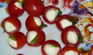 Бързо и вкусно предястие на базата на чери домати и моцарела пригответе у дома за празничната трапеза. Традиционна салата “Капрезе” При нетрадиционно обслужване гостите ще харесат.