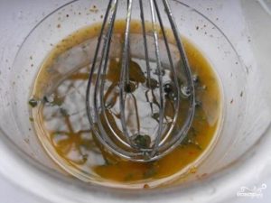- Смесете оцет, олио, подправки, сол, черен пипер в купа. Beat.