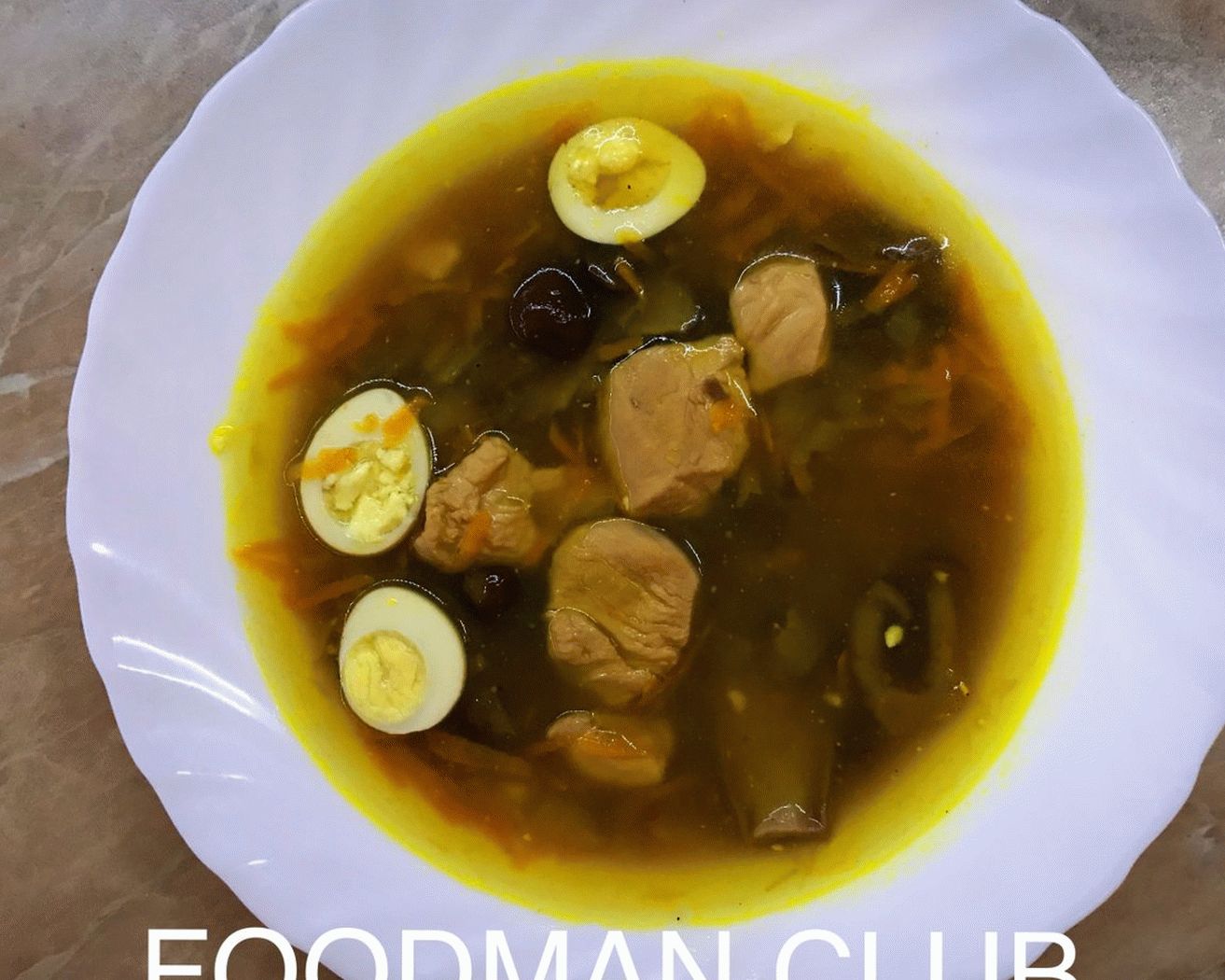 - Сварете супата на слаб огън за 15-20 минути. 5 минути преди готовност сол и черен пипер на вкус, добавете яйцата. Приятно ми е апетит!
