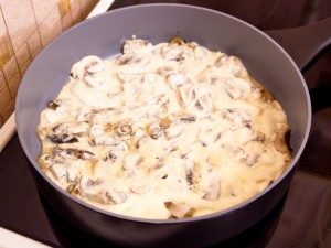 - Нарязани шампиньони на малки филийки върху малко количество растително масло за десет минути. Добавете малко сол и черен пипер.
