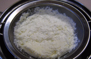 - След това, изсипете получената маса в фина цедка, така че стъклена цяла суроватка. Може да се използва серум – на въз основа на него можете да изпържите вкусни палачинки или мекици.
