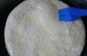 - Khachapuri трябва да се намаже с яйце и вилица, за да се направят пробиви вътре няколко места.
