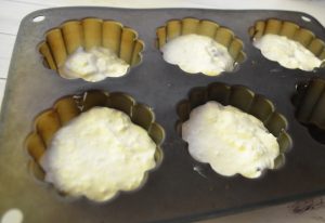 - Напълнете силиконовите формички с тесто и печете на 180 градуса около половин час.