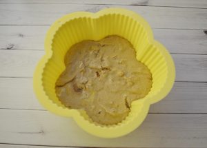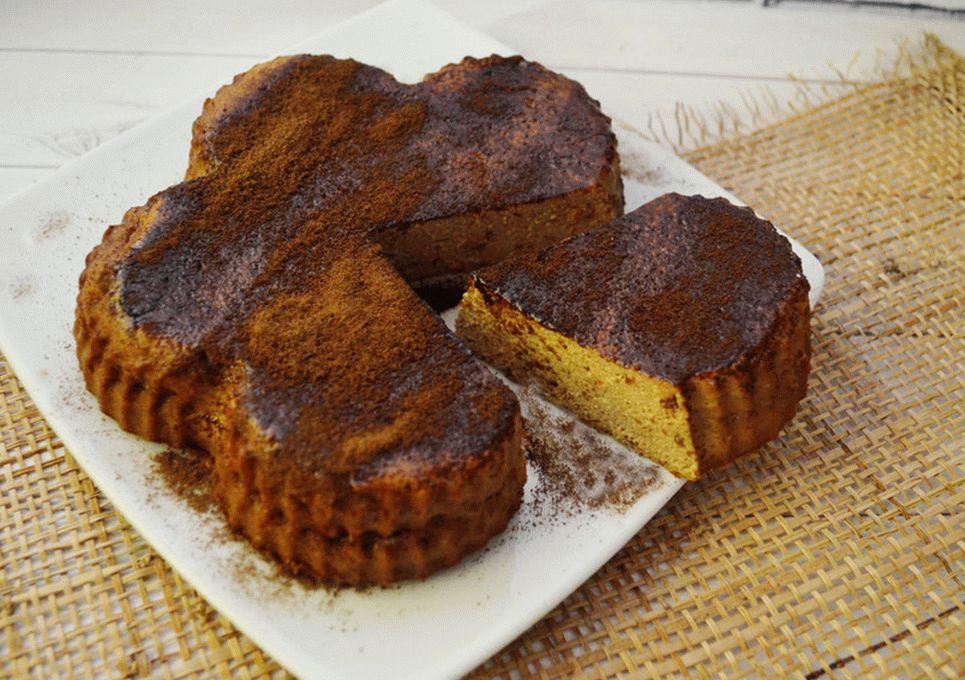 - Получената маса се излива в силиконова форма. Печете вътре предварително загрята фурна на 180 градуса четиридесет минути.