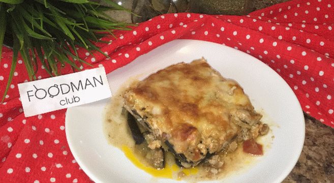 - Намажете формата с масло. Разстелете половината патладжан, отгоре сложете половината кайма, поливайте дресинга. Тогава ние вярваме.
