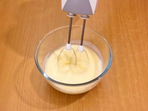 - Отделно разбийте охладения крем с пясък и ванилова захар.