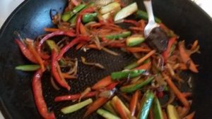 Когато имате нужда от бърза захапка, е напълно възможно да си направите такава вкусни юфка. Целият процес на домашно готвене не отнема повече от 15 минути. Зеленчуците се запържват на силен огън бързо, постоянно разбъркване. Те запазват текстурата си. Зеленчуците не трябва да бъдат мека и малко хрупка на зъбите.