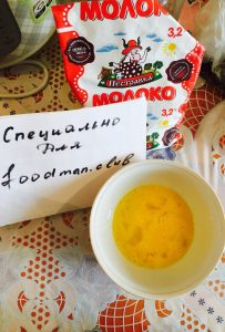 - В съд с високи ръбове и широко дъно разбийте яйцата, мляко и добавете щипка сол. За камшик можете да използвате като миксер, разбийте или обикновена вилица.
