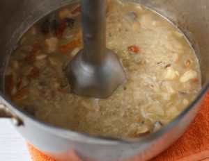 - Махнете тигана от котлона, намажете получената супа с пасатор. Изпращаме тигана обратно на огъня.