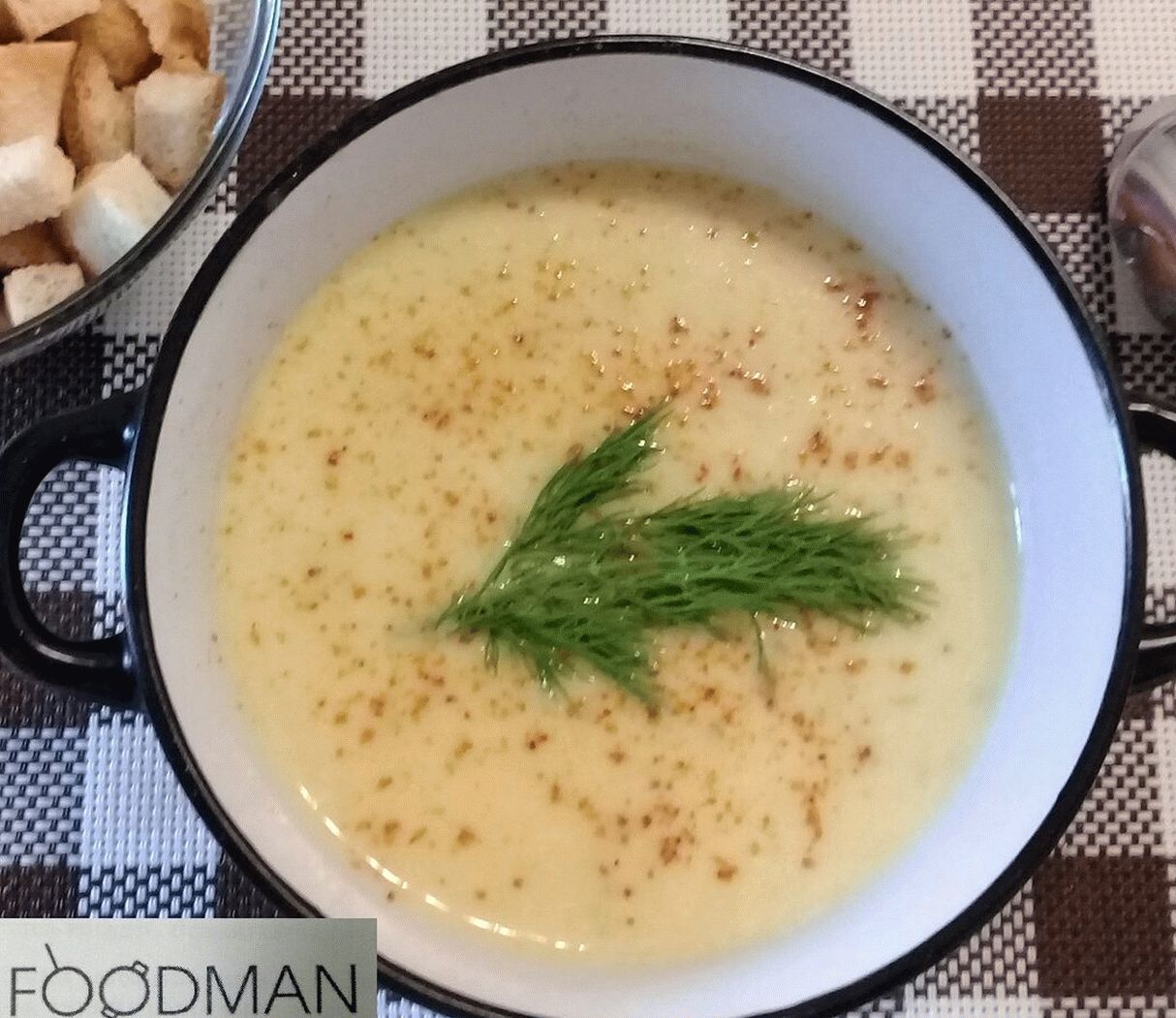 - Крем от супа от тиквички със сметана е готов. Сервирайте с бисквити, по-рано гарниран със смлян червен пипер и стрък копър. Приятен апетит.