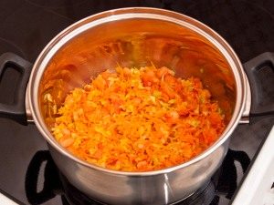 - Към него добавете морковите, настъргани на средна ренде, запържете заедно.
