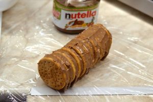 В купа смесете крема сирене (маскарпоне или филаделфия) с Nutella.