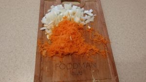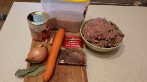 - Смесете каймата с лука, ориза. Добавете сол, черен пипер.