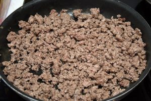 - Добавете подправки, царевица, боб в тигана с кайма, доматен сос. Разбъркайте добре.