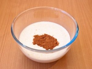 - За да изсипете в купа, разбийте яйцата, комбинирайте със сметана, да се смеси.