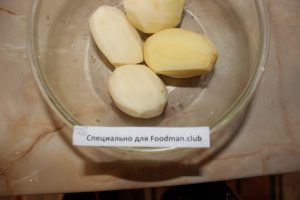 - 4-5 картофи обелете, нарежете на малки кубчета и хвърлете във вряща подсолена вода.