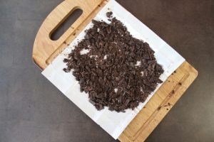 - Нарежете шоколада на малки парченца с нож.