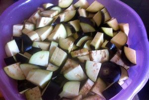 - Нарежете патладжана на средни филийки.
