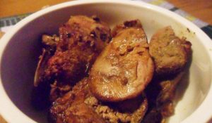 - Поставете маринованата на предварително загрята тиган с олио черен дроб, запържете от двете страни, като разбърквате. Сол в края затворете капака, оставете настрана за пет минути. Сервирайте горещо.