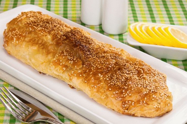 - Намажете тестото с разбито яйце, поръсете със сусамово семе.