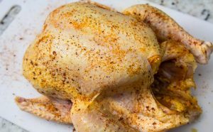Сочно и невероятно вкусно пиле ще се окаже, ако го разтриете чесън, семена от кимион, червен пипер, накиснете вътре хладилник за няколко часа и гответе у дома във фурната на стойте изправени. Ако нямате специални увеселите, можете да направите пиле с помощта на бутилка.