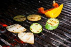 - Нарязани зеленчуци: патладжан, корен от целина, тиквички и сладки черен пипер. Фрай на скара.