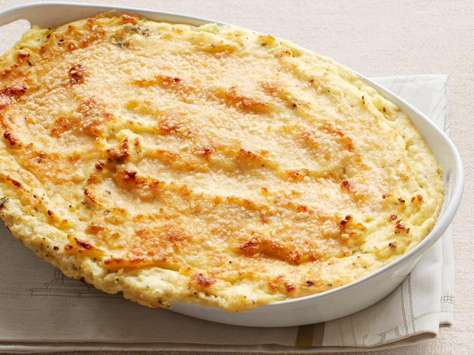 - Изсипете втората половина от сметаната, поръсете с останалото сирене.