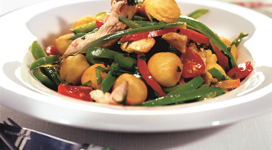 - Комбинирайте картофи с пиле, поръсете с билки и Сервирайте.