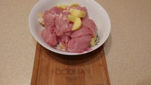 - Нарежете филето, лука, чесъна, сиренето. Напълнете кифличката с вода и Натиснете.